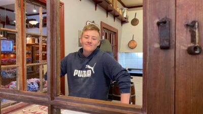 Sander Elderud, 14, berättar om sin praktik under hans sista dag på Polkapojkarna i Gränna. Många ungdomar gör praktik på polkagriskokeri. ”Det har varit roliga
