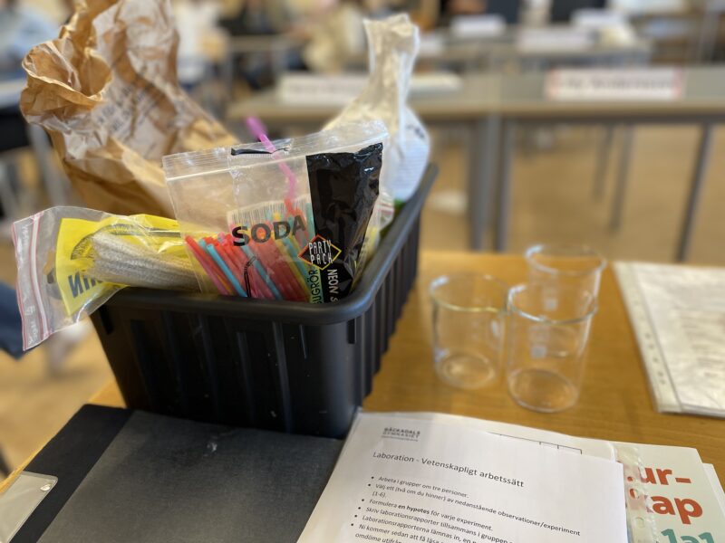 Labbverktygen för dagens lektion är framplockade. Foto: Alexandra Östhed.