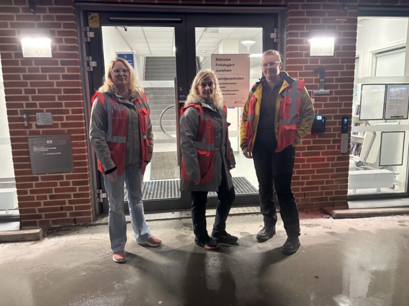 Organisationen har egna reflexvästar i röd kulör, ficklampor och första hjälpen-kit.