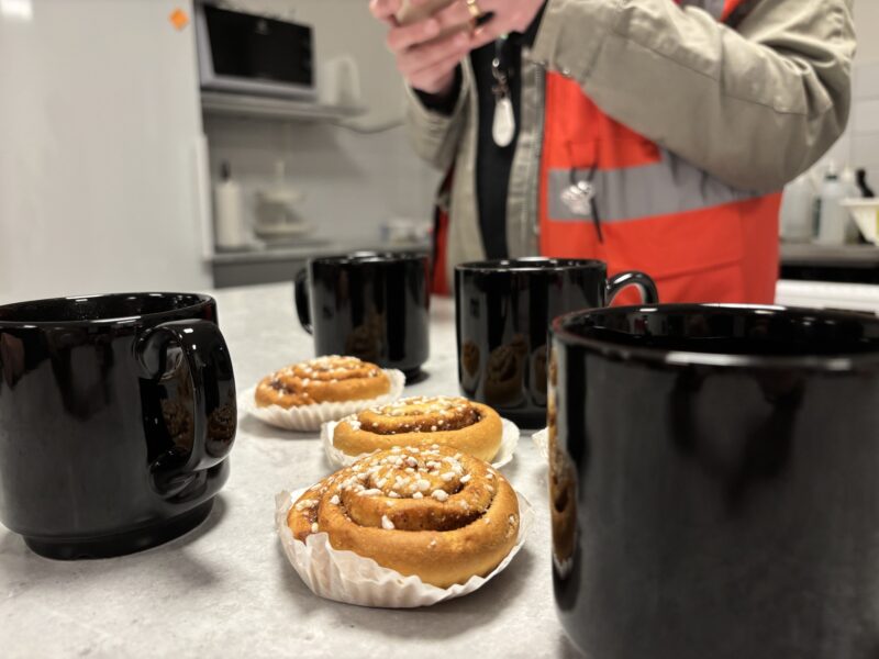 Efter drygt två timmar är det dags för fikapaus. De tre nattvandrarna återvänder till fritidsgården, där Linda kokar kaffe och Malin har lagt fram bullar för upptining.
